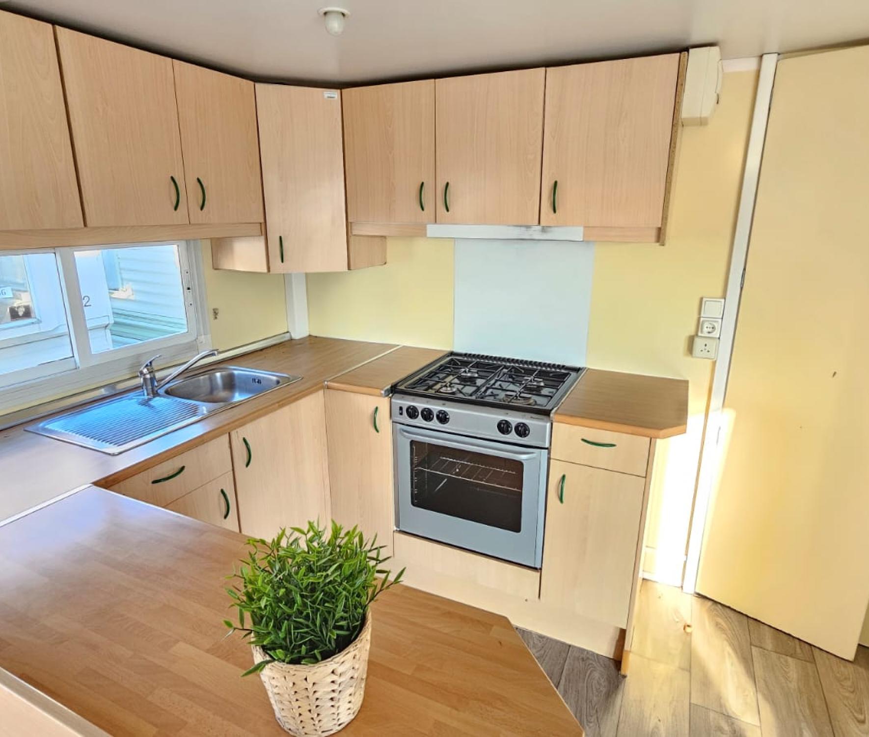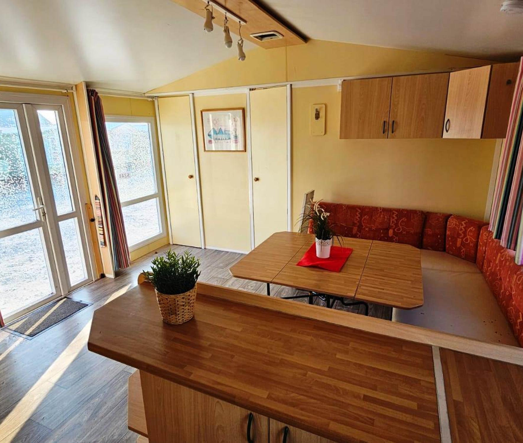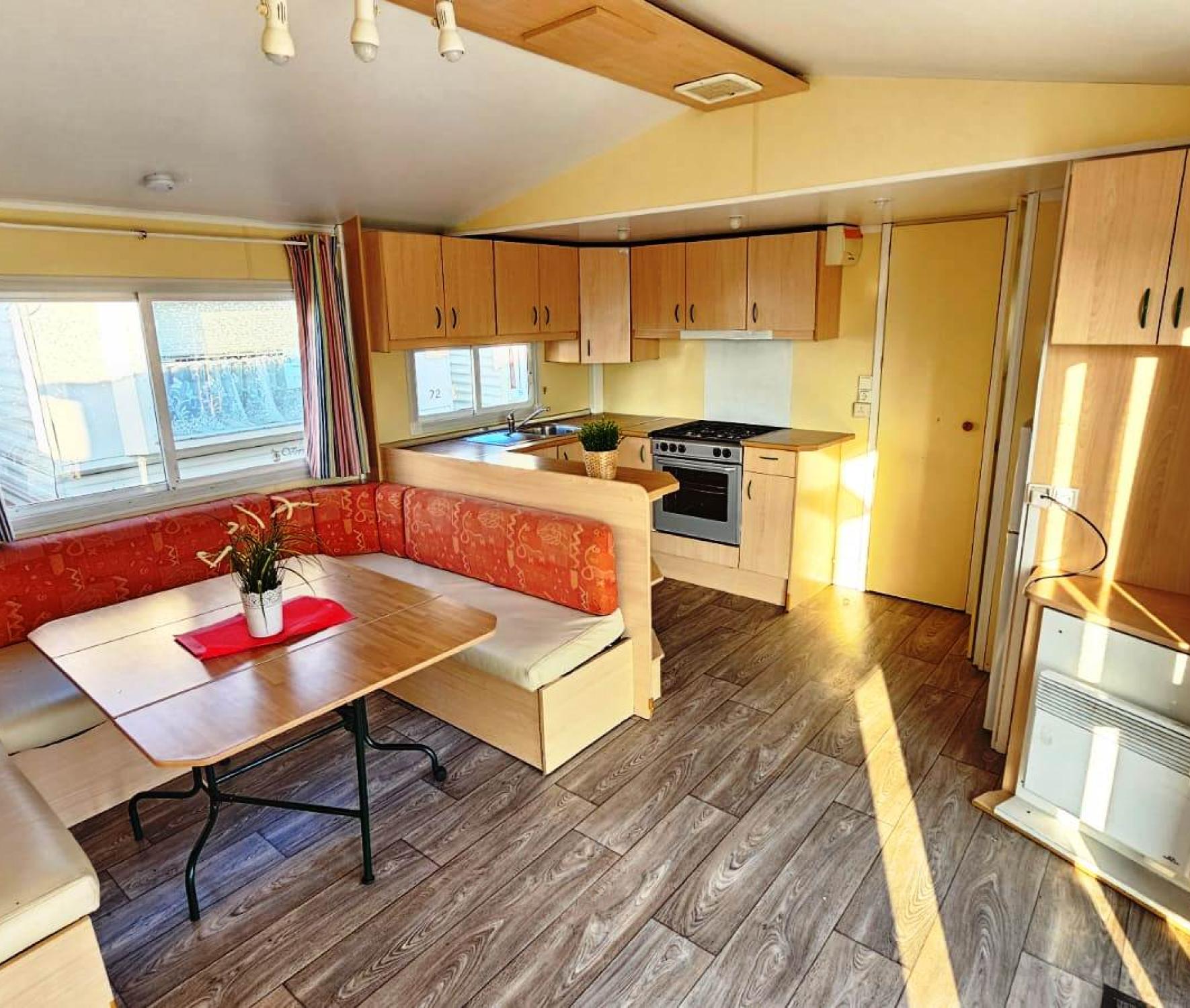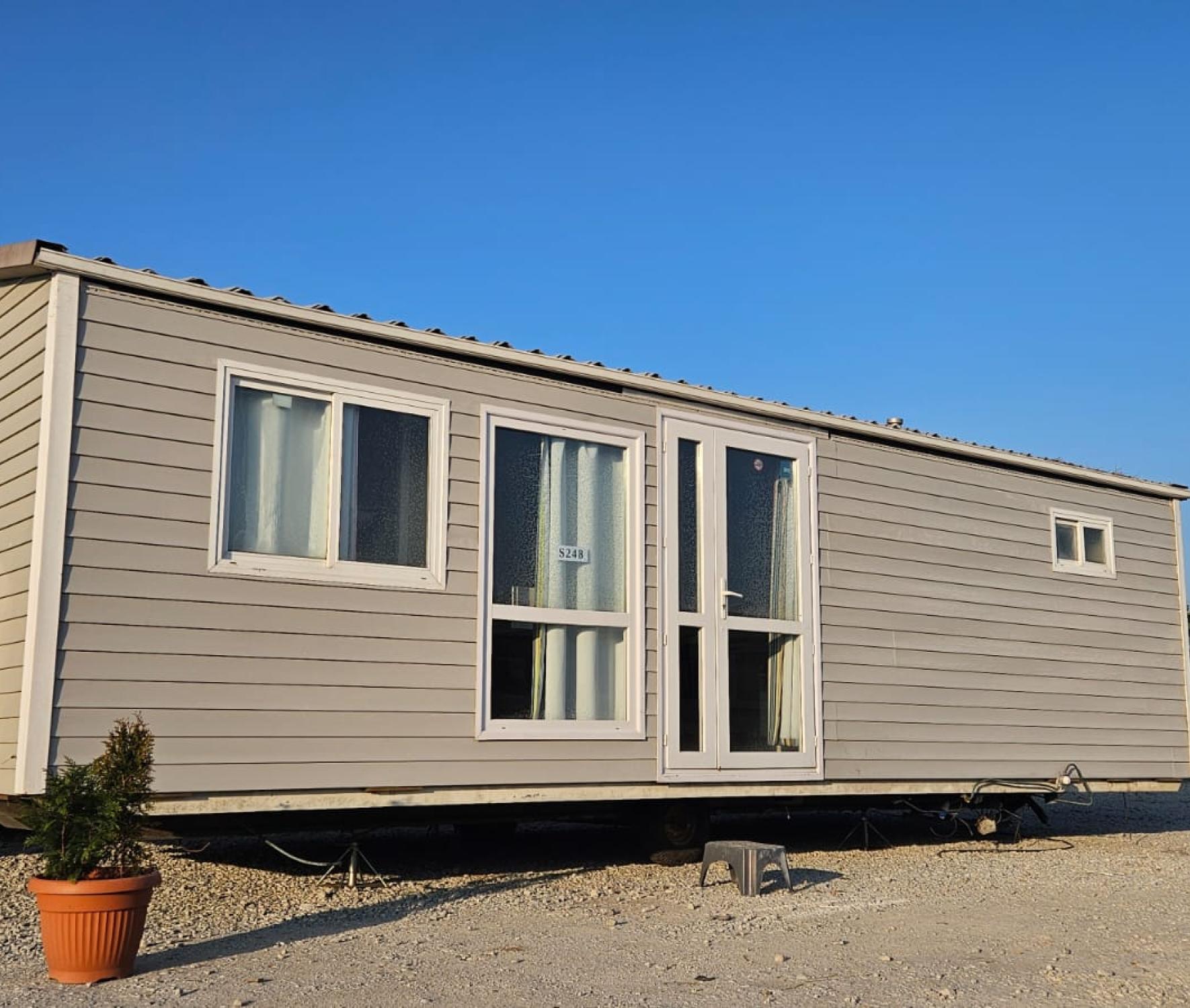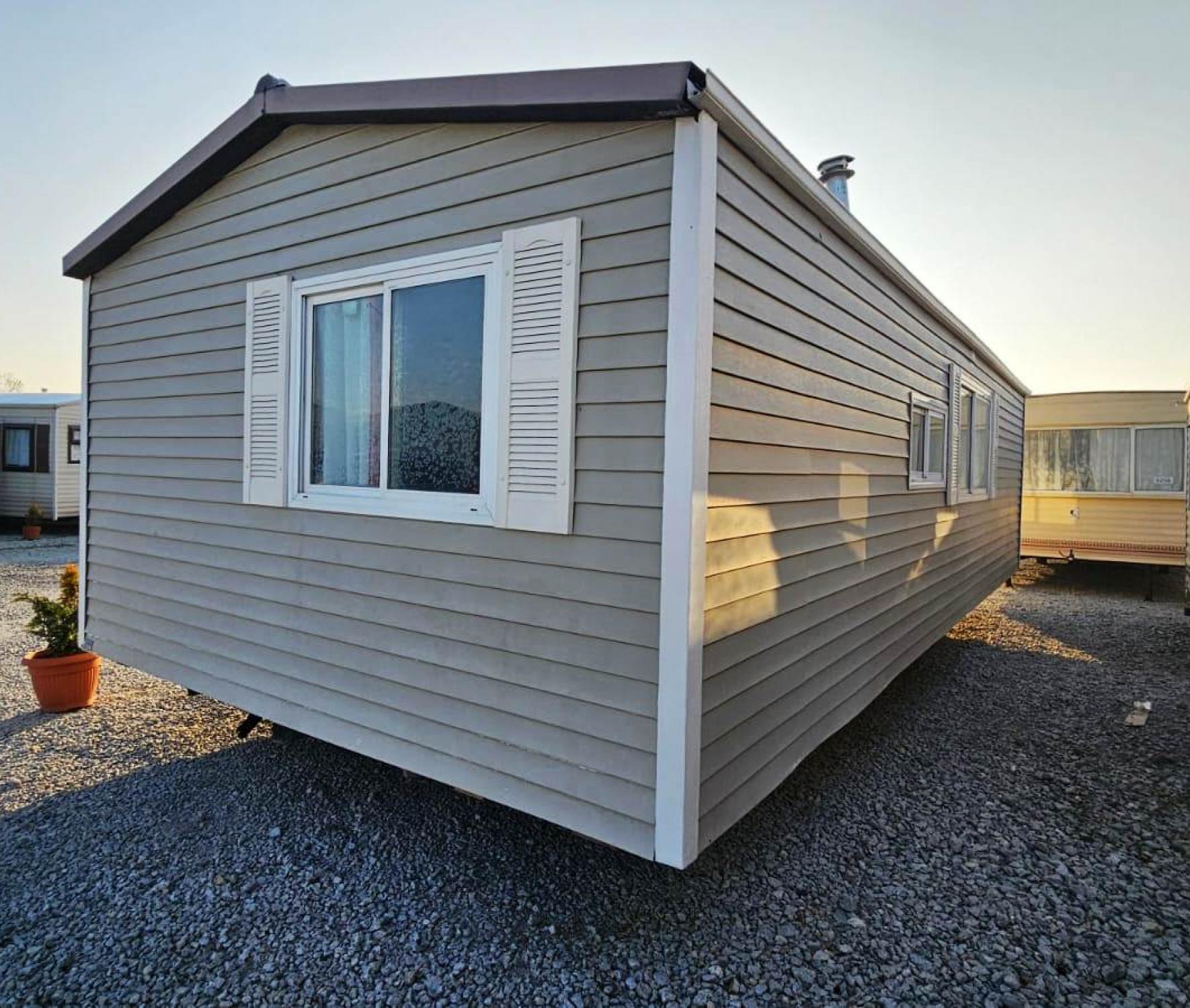 Zachovalý široký celoroční dům, dvojsklo v oknech a dveřích . Dům má tři ložnice. Vybavení: jeden vchod, kuchyňská linka včetně sporáku a dřezu, lednice, sedací souprava, TV stolek, ložnice s lůžky a šatní skříní, množství úložných skříněk, odkládací police, plynový ohřívač teplé vody, sprchovací kout, umývadlo a WC. Všechny námi prodávané mobilní domy, důkladně prověřujeme, čistíme a renovujeme. Veškeré rozvody a přípojky pro elektřinu, vodu, plyn a odpady jsou plně funkční a mobilní dům je připraven k okamžitému bydlení. Cena včetně dopravy a složení na místě určení. Záruka 1/2 roku.