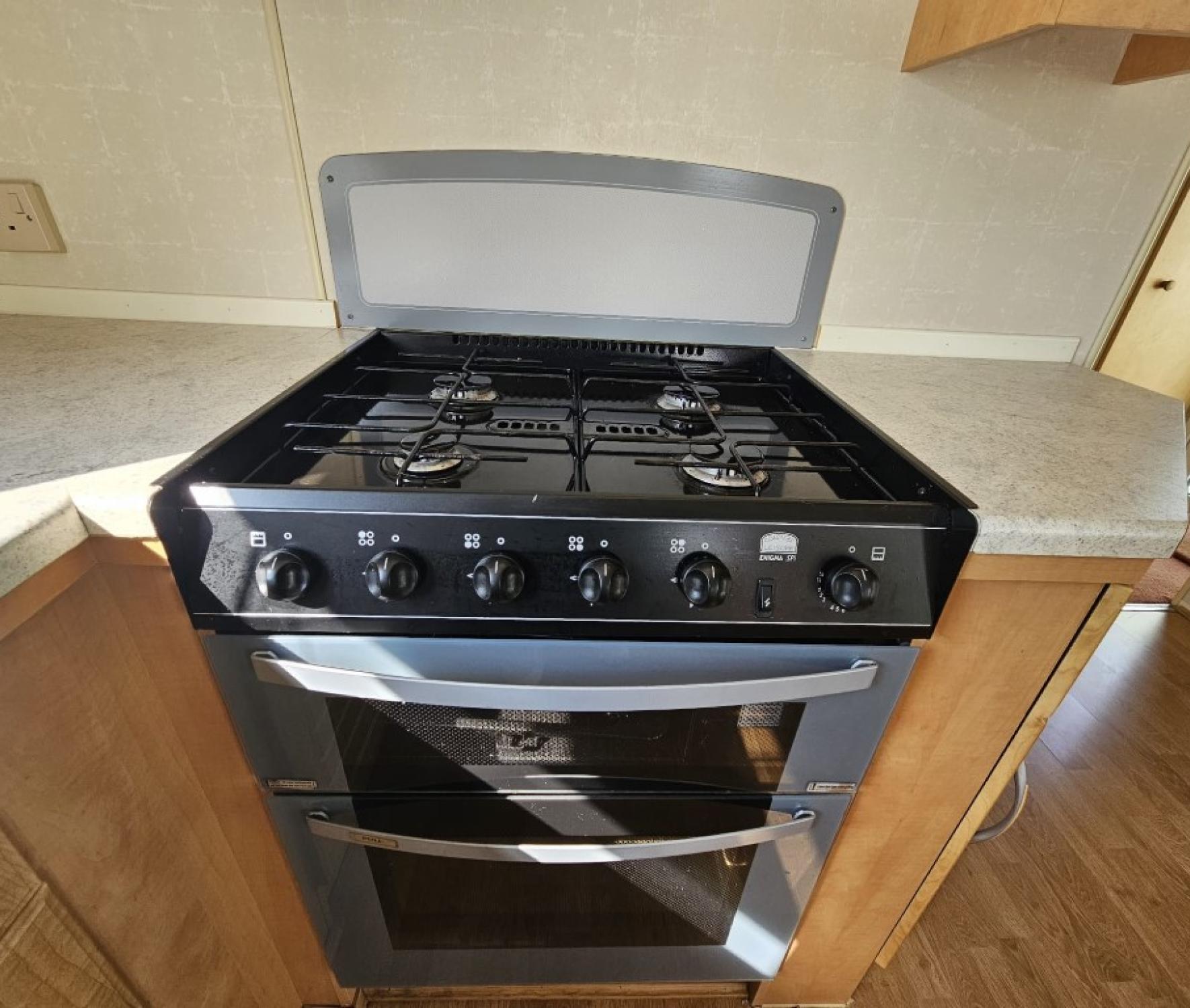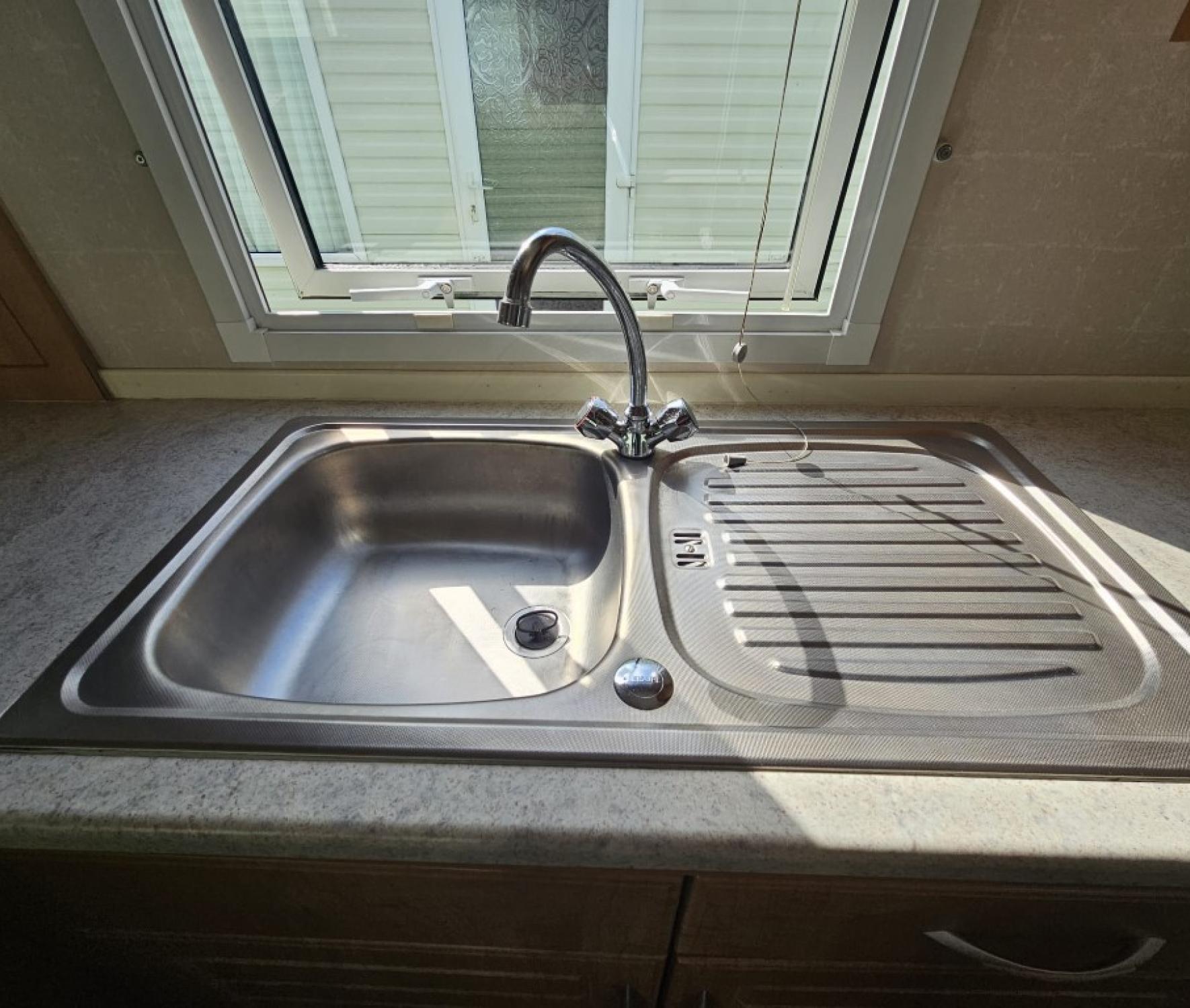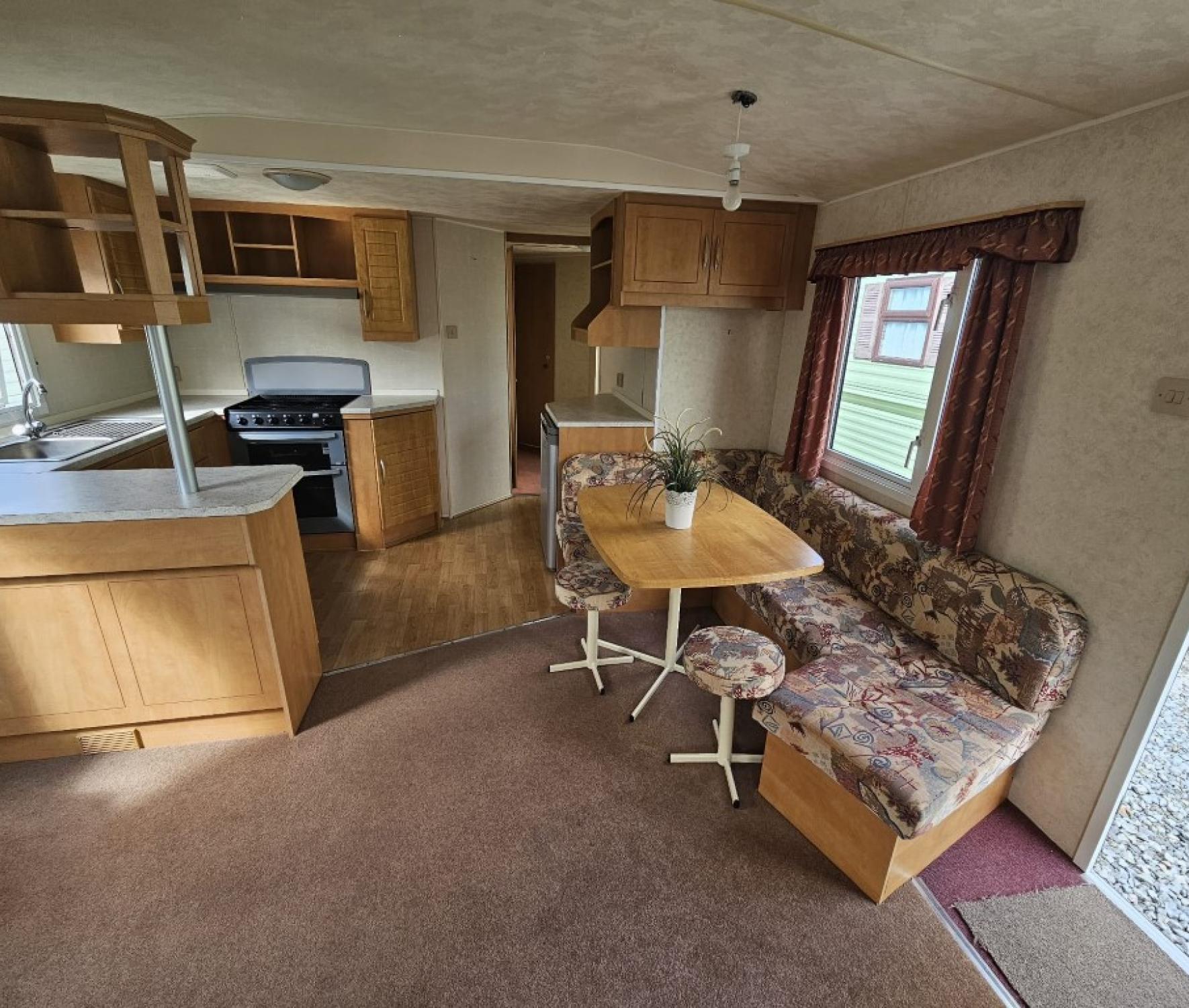 Novější , pěkný a široký celoroční dům dovezený z Anglie , ve velmi zachovalém stavu po repasi. Nové  lino v obyváku chodbě WC a koupelně viz video. Opískování rámu od spodu a nástřik proti korozi. Dům má 2 ložnice a zvýšený strop po celém domě. Vybavení: dva vchody, kuchyňská linka včetně sporáku a trouby kuchyňského dřezu, lednice, sedací souprava, TV stolek, ložnice s lůžky a šatní skříní , množství úložných skříněk, odkládací police, plynové topné těleso, plynový ohřívač teplé vody .Přímotopy v pokojích. Koupelna a WC. Všechny námi prodávané mobilní domy, důkladně prověřujeme, čistíme a renovujeme. Veškeré rozvody a přípojky pro elektřinu, vodu, plyn a odpady jsou vždy plně funkční. Cena včetně dopravy a složení na místě určení. Záruka 1/2 roku.