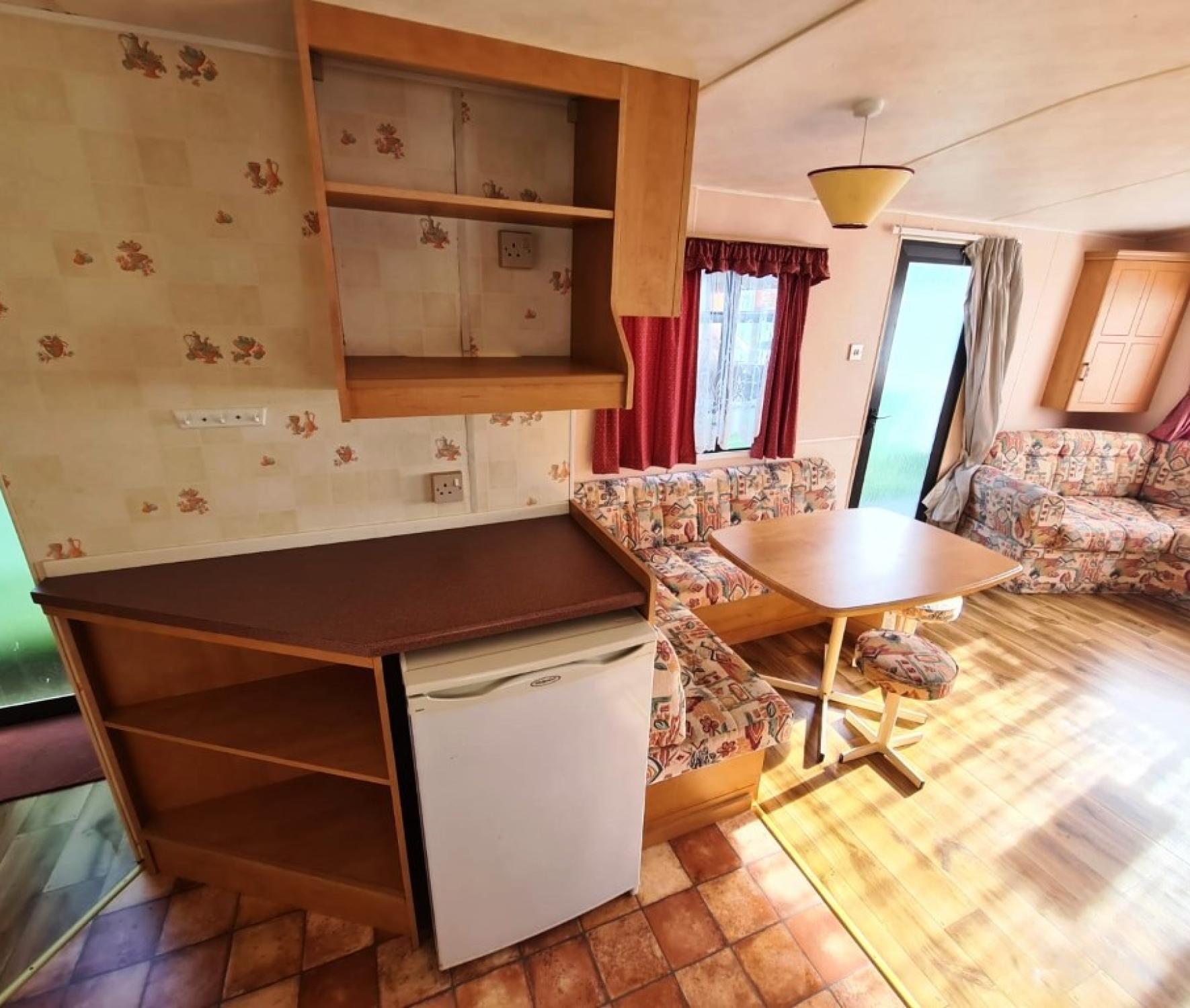 Široký sezonní dům dovezený z Anglie , ve velmi zachovalém stavu po repasi. Opískování rámu od spodu a nástřik proti korozi. Výměna koberců v obyváku a chodbě za lino. Vybavení: dva vchody, kuchyňská linka včetně sporáku a trouby kuchyňského dřezu, lednice, sedací souprava, TV stolek, ložnice s lůžky a šatní skříní, množství úložných skříněk, odkládací police, plynové topné těleso, plynový ohřívač teplé vody. Koupelna a samostatné WC. Všechny námi prodávané mobilní domy, důkladně prověřujeme, čistíme a renovujeme. Veškeré rozvody a přípojky pro elektřinu, vodu, plyn a odpady jsou vždy plně funkční.Cena včetně dopravy a složení na místě určení. Záruka 1/2 roku.